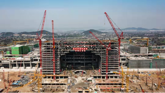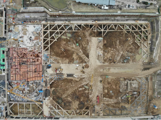 杭州萧山国际机场陆侧交通中心基坑平面面积约10万平方米,整体开挖深度为18.6米,东部采用半逆作法,为杭州亚运会重点项目,工期紧张,需考虑与西侧在建T4航站楼、北侧在建地铁站、南侧在建高铁站的相互影响,保证东侧T1航站楼“不停航、不停运”。