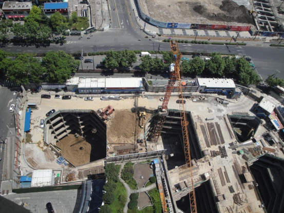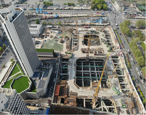 杭州中心项目设6层地下室,基坑开挖深度30.6~36m,平面面积约17000平米;攻克了深厚软土地基紧邻地铁设施的超深基坑变形控制难题,在杭州武林商圈核心地段建成地下6层、面积近10万平方的地下空间,社会效益、经济效益显著。